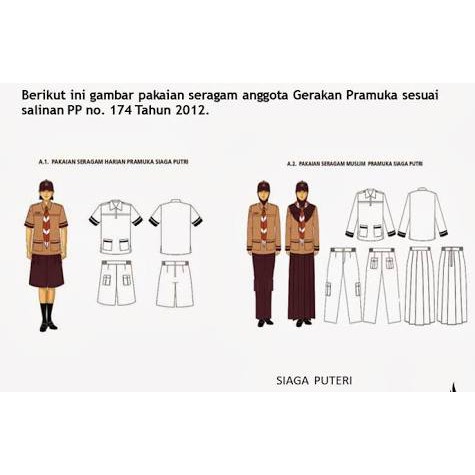 Gerakan pramuka bertujuan membentuk manusia yang berkepribadian dan berwatak luhur yang sehat jasmani dan rohaninya serta menjadi warga negara republik indonesia yang berjiwa pancasila setia dan patuh kepada negara kesatuan republik indoesia sehingga menjadi anggota masyarakat yang baik dan berguna yang dapat membangun dirinya masyarakat bangsa dan negara. Contoh model dan gambar pakaian seragam pramuka penggalang putri terbaru sesuai sk kwarnas no 174 tahun 2012. Sku dalam tingkatannya masing masing.