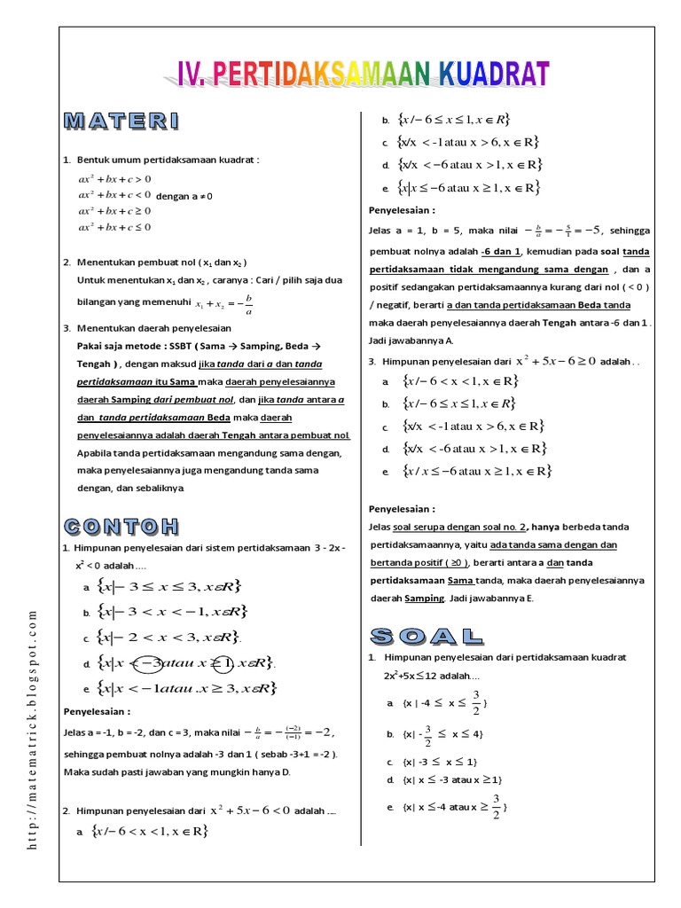 Persamaan Dan Pertidaksamaan Kuadrat Sarjanaku Com