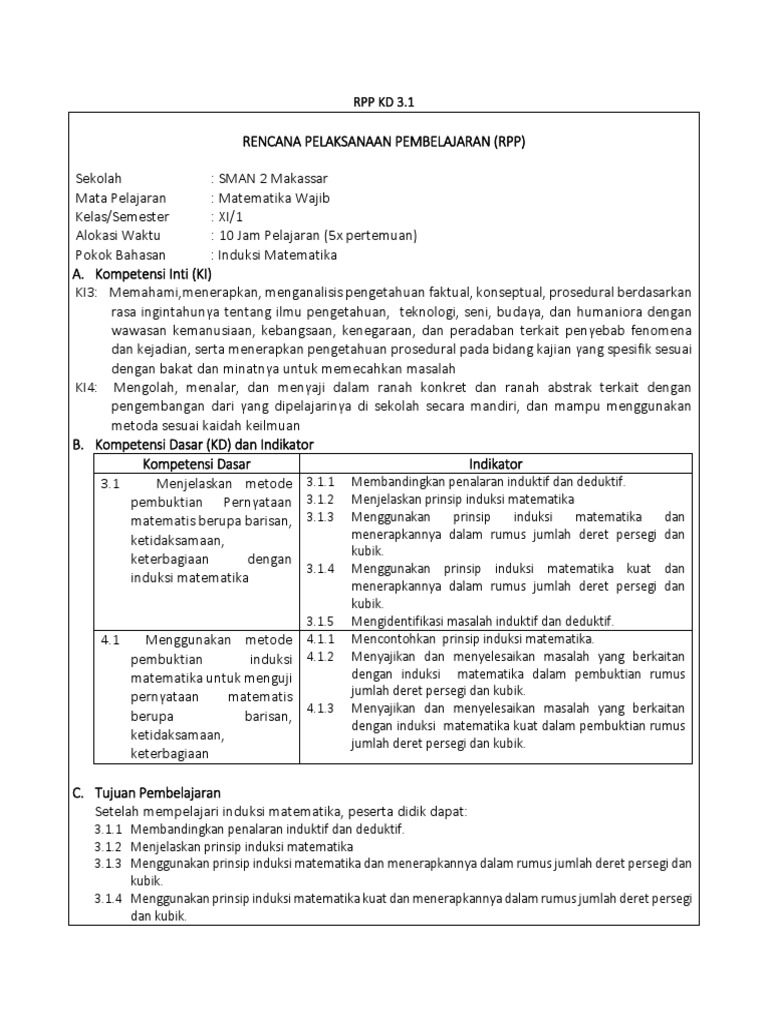 Rpp K13 Kd 3 1 Induksi Matematika Fix