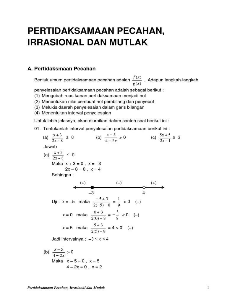 Pertidaksamaan Rasional Irrasional Dan Mutlak