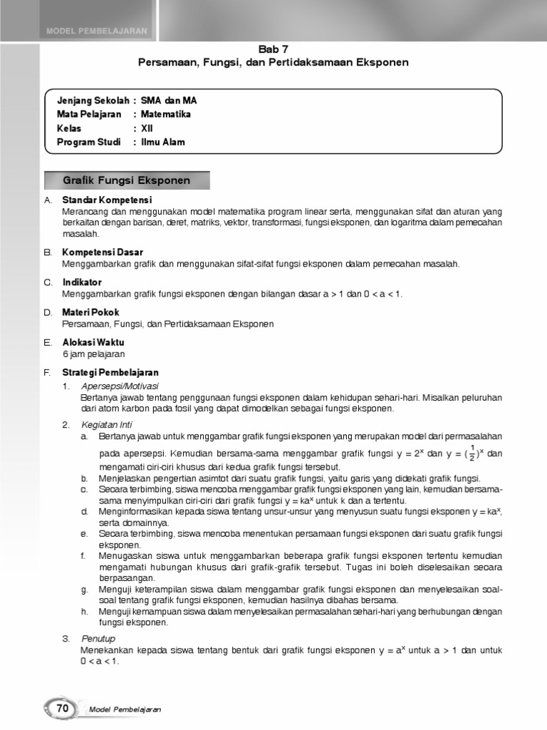 Model Pembelaj Persamaan Fungsi Peridaksamaan Eksponen Dan