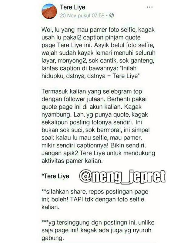 Mencak Mencak Di Fb Soal Quote Nya Dicopas Buat Caption Tere Liye