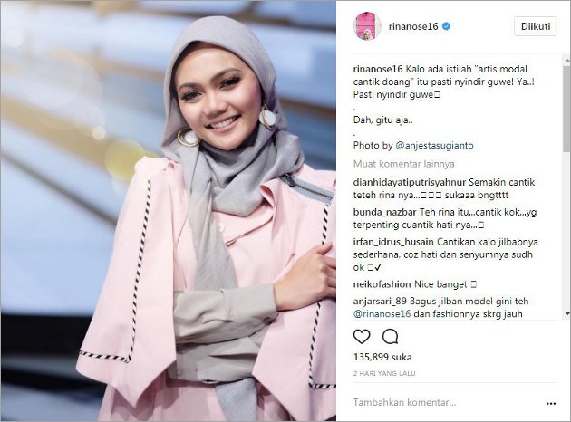 Tulis Caption Narsis Soal Artis Modal Cantik Rina Nose Malah Dipuji