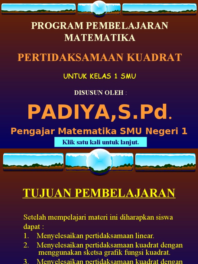 Pertemuan Ketiga Fungsi Persamaan Kuadrat Dan Pertidaksamaan Kuad