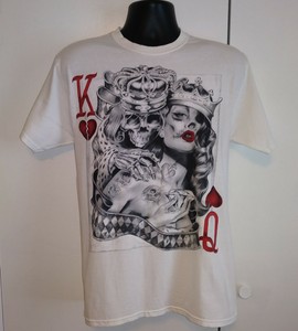 Details About King Queen Of Hearts Men S Tattoo Skeleton Graphic White T Shirt Size Medium