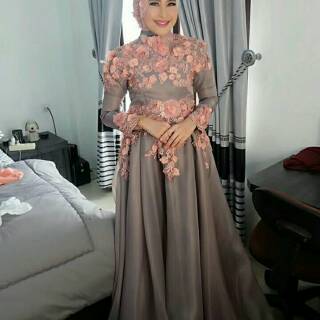 Baju Pesta Kondangan Bunga 3 D Mewah Wanita Muslim Cantik