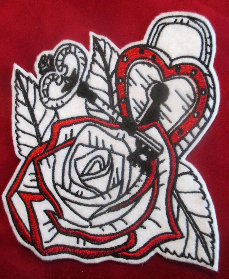 Lg Embroidered Key To My Heart And Roses Applique Patch Valentine Biker Patch Tattoo Patch Heart Locket Lock And Key Iron On Sew On