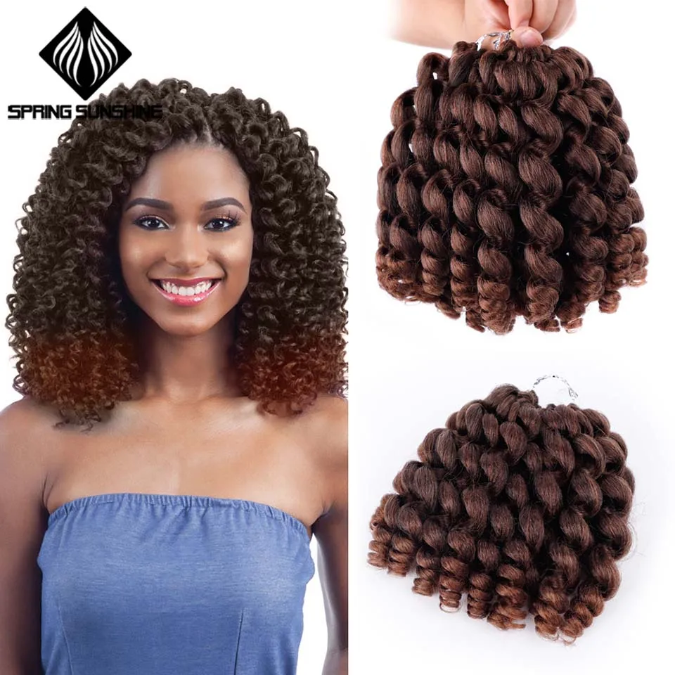 Sego 6 inch jamaican bounce crochet hair jumpy wand curl short curly jamaican crochet braids synthetic crochet braiding hair extensions ombre twist braid hair black to coffee brown 3 bundle. 3 packs used jamaican bounce sensationnel lets connect.