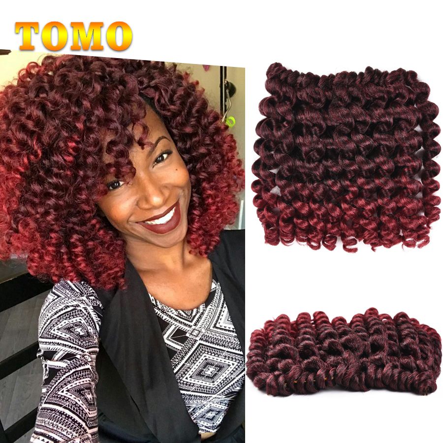 Tomo Hair Jamaican Bounce Curly Twist Burgundy Brown Ombre Crochet Braids Wand Curl 8 Inch 20 Strands Pack Crochet Braiding Hair Extensions