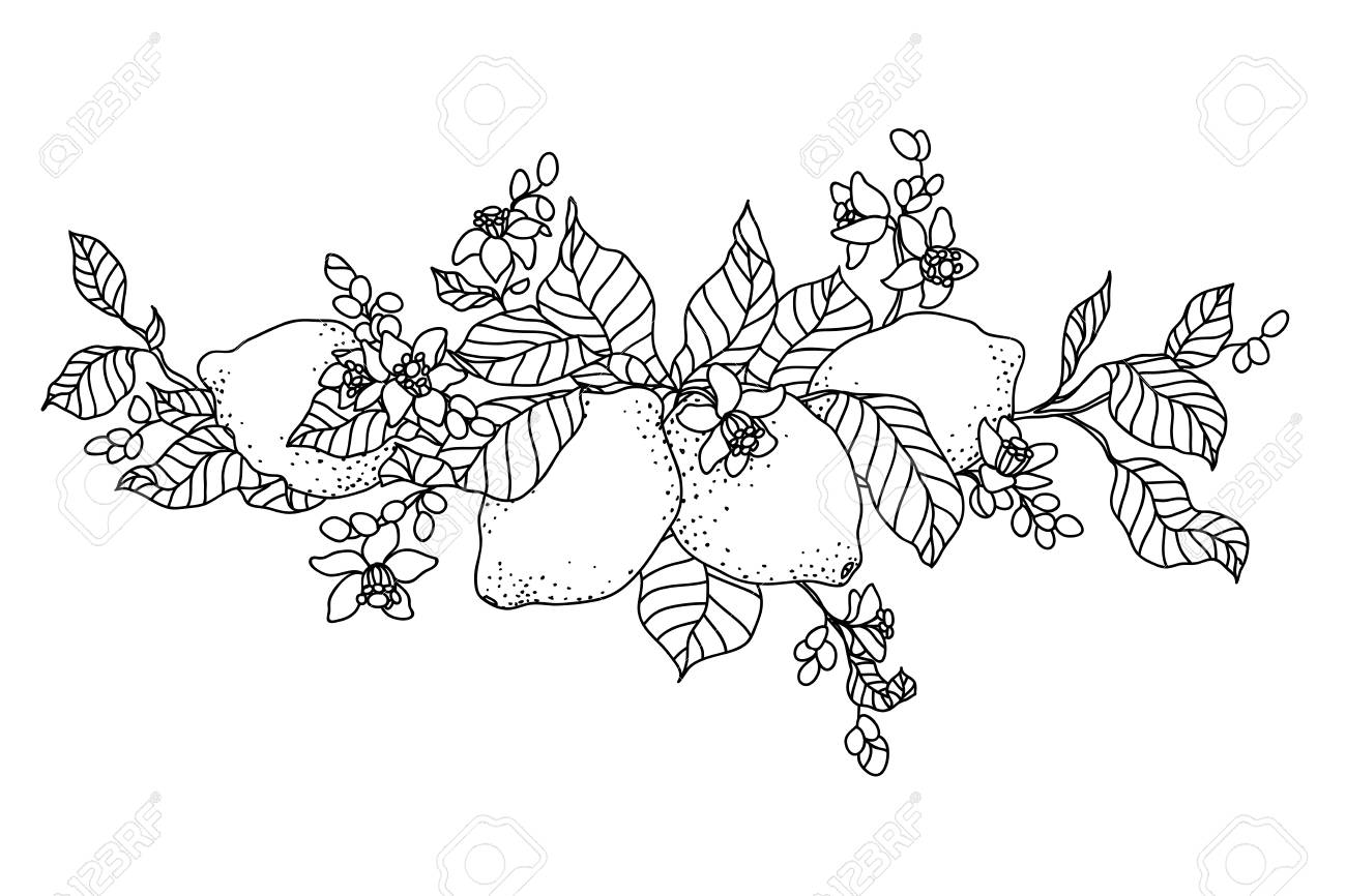 Lemon Tree In Tattoo Style Image Light Little Flowers With Fruits