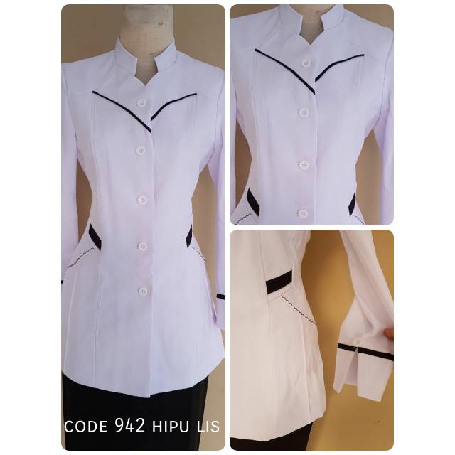 Set Blazer Baju Dinas Kerja Kantor Kesehatan Putih Lis Hitam 942 205 Cewek Wanita Panjang Formal
