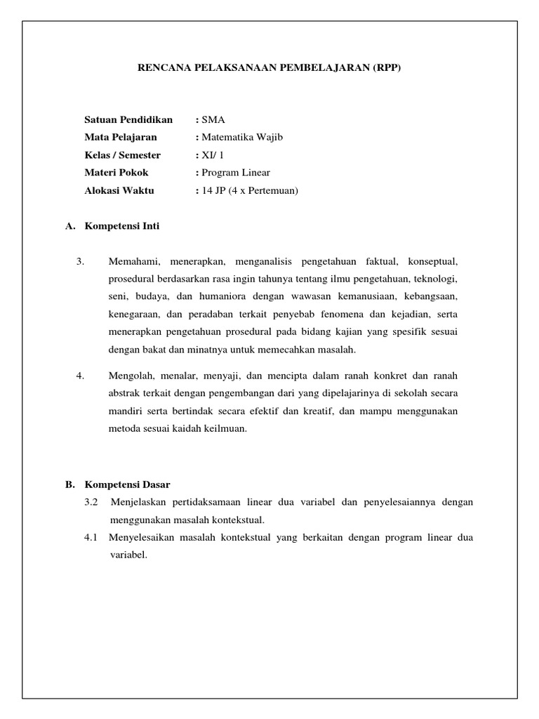 Rpp Sistem Pertidaksamaan Linear Dua Variabel