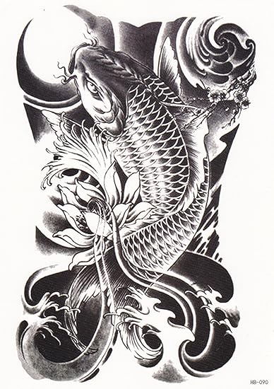 Amazon Com Black Koi Carp Fish Temporary Tattoo Stickers