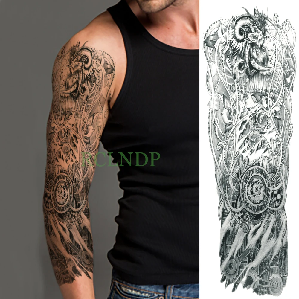 Us 1 99 Waterproof Temporary Tattoo Sticker Lion Full Arm Fake Tatto Big Flash Tatoo Sleeve Large Size Body Art For Men Women Girl Lady In Temporary